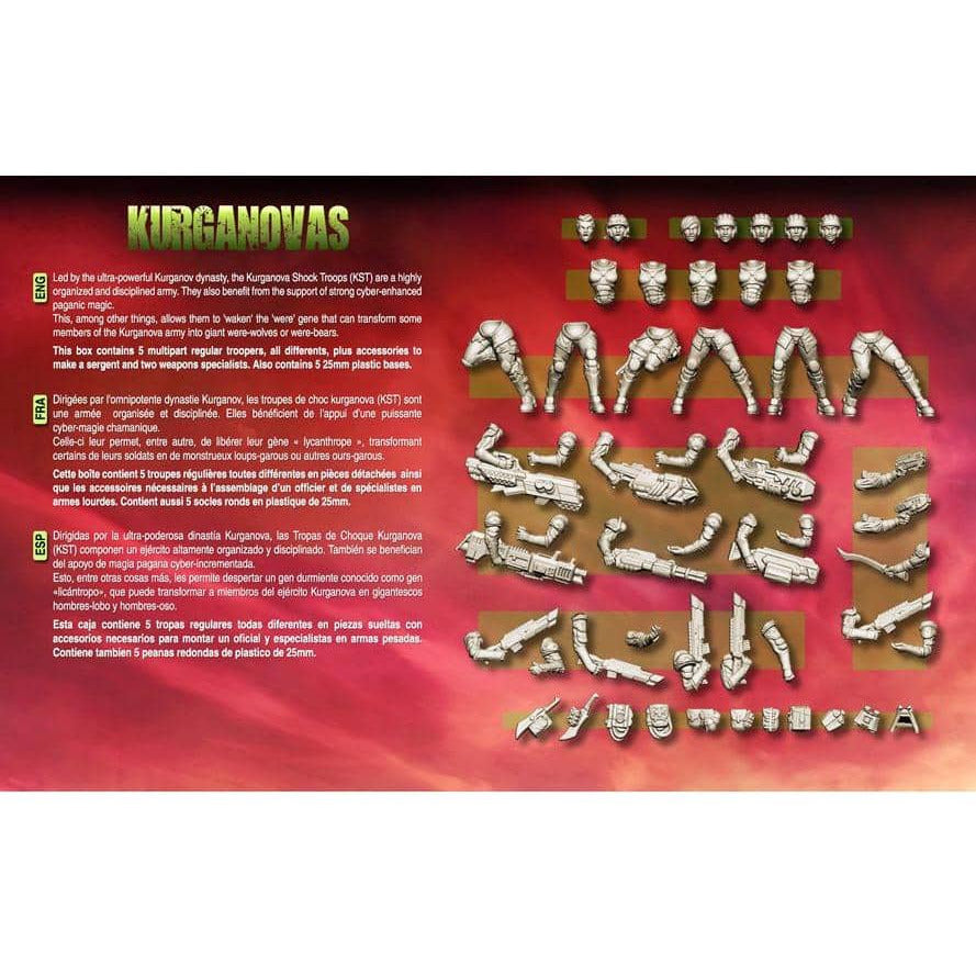 超強力なクルガノフ家が率いるクルガノバ衝撃部隊は、東ヨーロッパのテーマを備えた高度に組織化され、規律ある軍隊です。彼らはまた、強力なサイバー強化された異教の魔法の支援からも恩恵を受けます。これにより、とりわけ、彼らが「覚醒」しているのは、「ウィズ」であり、クルガノヴァ軍の一部のメンバーを巨大なwedまたはbearに変えることができる遺伝子でした。